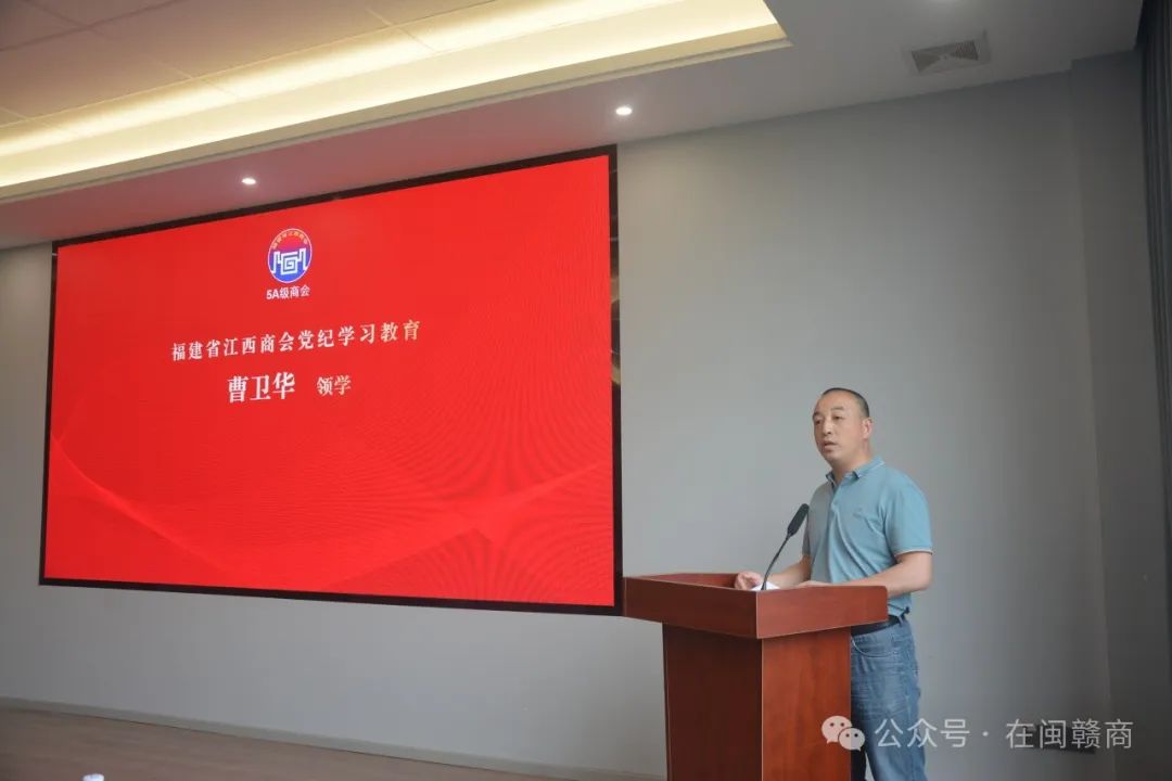 4月20日,福建省江西商会组织开展党纪学习教育活动,深入学习贯彻习近平总书记关于党纪学习教育的重要讲话和重要指示精神,传达省工商联开展党纪学习教育工作部署要求,部署福建省江西商会党纪学习教育工作。商会班子主要成员:会长张学霖、执行会长王红、党支部书记兼秘书长周高福、常务副会长王涌,常务副会长、副会长、理事、会员及支部党员等60余人参加活动。 党支部组织委员、副秘书长曹卫华向大家传达了省工商联开展党纪学习教育的有关精神,并组织开展了党纪学习教育活动。 会议强调,一要切实提高政治站位。在上级党组织的领导下,把学习教育作为重要的政治任务,精心组织,积极引导党员干部筑牢信仰之基、补足精神之钙、把稳思想之舵,推动全党深刻领悟“两个确立”的决定性意义,坚决做到“两个维护”。二要切实完成目标要求。有计划地组织党员、会员原原本本学、逐章逐条学、反复对照学,把商会日常开展的轮值活动、专委会活动与党纪学习教育结合起来,用形象生动的语言、简明直观的案例,贴进实际,贴近企业家党员。 张学霖会长在总结讲话中表示,党纪教育是党内的思想政治教育,搞好党纪教育对增强党性、提高党组织战斗力具有重要作用。商会每个企业家都要提高政治站位,政治站位提高了,商业站位也会得到一定的提升,要做一个讲政治的商人。他指出,在今后的工作中,省商会将继续开展形式多样的党纪教育活动,希望大家能够积极参与、认真学习并落到实处。