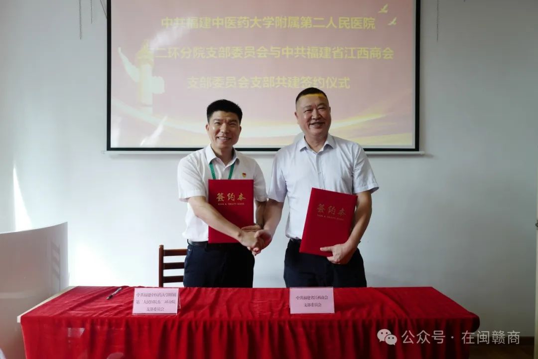 为深入学习贯彻习近平新时代中国特色社会主义思想,全面深入推进基层党组织建设,搭建党建共建平台,形成“共建组织、共抓队伍、共享资源、共谋发展”的党建工作新格局。10月15日,中共福建省江西商会支部委员会与中共福建中医药大学附属第二人民医院东二环分院支部委员会党建共建签约仪式在福建中医药大学附属第二人民医院东二环分院顺利举行。 党支部书记周高福、副书记张向阳、组织委员曹卫华、纪检委员许小虹、宣传委员黄海清,理事李晓利,秘书丁慧参加本次签约仪式。 在双方代表的共同见证下,福建省江西商会党支部书记周高福与福建中医药大学附属第二人民医院东二环分院党支部书记、院长侯宗明郑重地签署了党建共建协议。协议明确了双方在党建共建方面的目标、内容和具体措施,包括定期开展党建交流活动、共同组织党员教育培训、联合开展主题党日活动、加强双方健康体检合作等内容。 此次党建共建协议的签订,是福建省江西商会与福建中医药大学附属第二人民医院东二环分院积极探索党建工作新模式的有益尝试。相信在双方的共同努力下,党建共建工作将取得丰硕成果,为推动双方事业发展、服务社会民生做出积极贡献。同时,这也将为其他社会组织和医疗机构开展党建共建工作提供有益借鉴,促进全社会形成党建引领、共建共享的良好氛围。