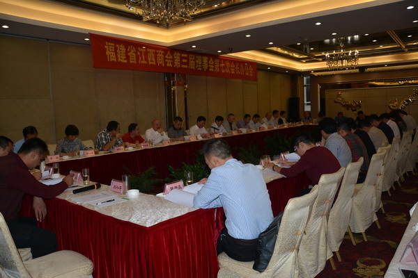 2015年11月21日,福建省江西商会第三届理事会第七次会长办公会在福州市五四路荣誉大酒店召开,会议由执行会长张学霖主持,会长胡连荣,常务副会长陈昌幸、杨祖亮、唐潮、王涌、黄斌(代表)、陈晓康、杜景平、李之仁(代表)、肖勤勇、余志勇(代表),监事会主席应卫峰(代表)副会长邓剑锋、万松青、张诗生、孙建中(代表)、余园明、杨雪辉、周光明、柯亨清、胡小平、夏建明、夏兴华、康珉、康良喜(代表)、谢过路、谭骄思、肖正钟、柯常伙、杨敏、陈新焱,秘书长周高福参加了会议,福建省南昌商会会长范升以及秘书处工作人员列席会议。会议首先审议通过了《朱光泉辞去商会顾问委员会主任职务》、《增补顾问、会员以上人员名单》、《2015年1月-10月财务报告及2015年10月-2016年6月本届经费预算》报告、《2015年顾问座谈会和“凝聚赣商,创新发展”江西情 2015年会,以及<福建赣商>杂志十周年金刊方案》《2015年第四季度和2016年上半年工作计划》等议案,会上会长胡连荣提出了了成立商会投资平台的方案,南昌商会会长范升做技术推介,欢迎会员自愿参加,大力支持!参会人员对会议内容发表了意见,主要有以下几
