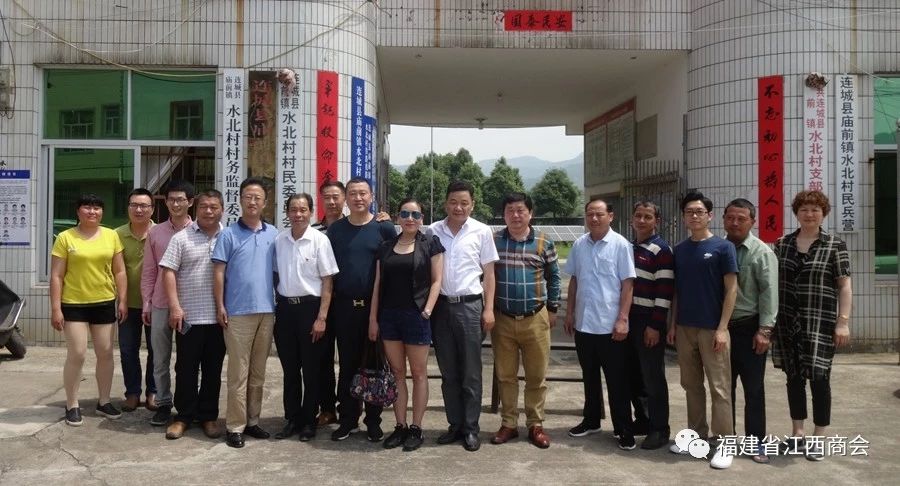 2018年5月11日-14日,为了更好地落实省委省政府、工商联托付的精准扶贫任务,帮助贫困村打好脱贫攻坚战。福建省江西商会秘书长周高福带着胡连荣会长、张学霖执行会长的指示,携秘书处同志以及龙岩市江西商会的企业家深入龙岩,实地考察了结对村连城县庙前镇水北村的扶贫具体情况。 连城县庙前镇水北村位于庙前镇西北部,临近319国道和G76厦蓉高速,是第四批省级扶贫开发重点村,由水北、仙坪、海坑、黄屋岭、阙山坝五个自然村组成,全村2184人,25个村民小组,566户,拥有耕地面积1313亩,林地面积14901亩,其中公益林面积3586亩,竹林面积600亩,主要产物为水稻、烟叶、槟榔芋、百香果,养殖业主要以山羊、肉鸡、肉兔、鱼为主。驻村企业有3家,主要生产铁合金、红砖和旧料加工。贫困户40户96人。商会考察团的到来,得到了镇村两级领导的热情欢迎。在庙前镇镇长吴福东,水北村支部书记罗金和以及村相关干部的带领下,考察团实地考