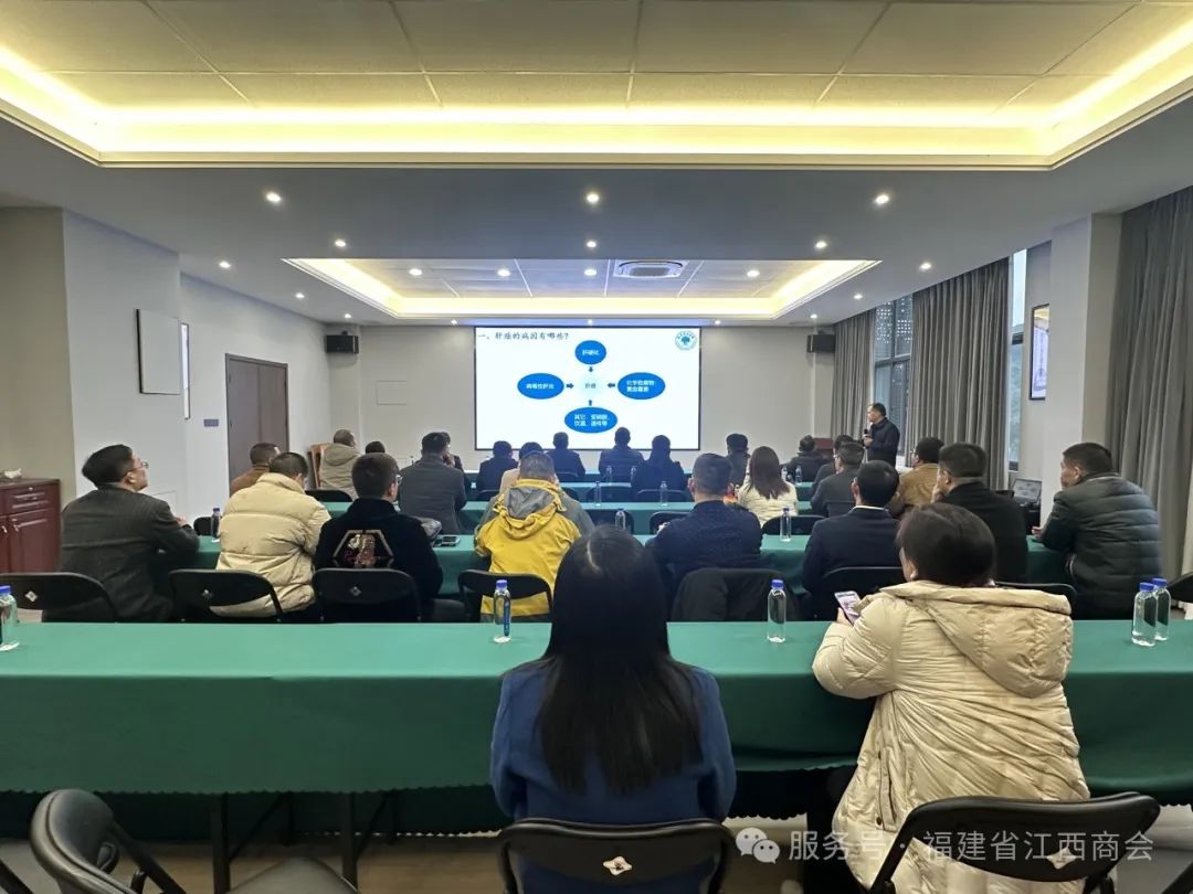 12月27日,赣医联合总会福建省工作委员会《赣医大讲堂》2024年度第三课在商会会议室成功开讲。赣医联合总会福建省工作委员会刘振华会长、周朝明副会长,福建省江西商会党支部书记周高福以及赣医联合总会福建省工作委员会、商会会员等40余人参加本次活动。活动由赣医联合总会福建省工作委员会刘振华会长主持。福州大学附属省立医院肝胆胰外科副主任严茂林为大家呈现了一场主题为《原发性肝癌诊断与治疗》的精彩学术盛宴。严主任从原发性肝癌在我国的严峻发病形势入手,深入剖析了其复杂的发病机制,使听众对疾病的根源有了清晰的认识。通过分享大量翔实的临床病例和研究数据,生动展示了不同治疗方法在不同分期肝癌患者中的个体化应用方案,让与会者深刻领略到了现代医学在原发性肝癌治疗领域的创新成果与发展趋势。 福建医科大学附属协和医院肿瘤内科副主任医师徐倩以《中国女性常见癌症》为主题,为大家带来了一场深入浅出、极具价值的医学知识科普讲座。在讲座中,徐倩副主任医师详细阐述了中国女性群体中发病率较高的各类癌症,她不仅深入讲解了这些常见癌症的发病原因,还通过清晰直观的图表和真实生动的临床案例,向听众们展示了各类癌症的早期症状