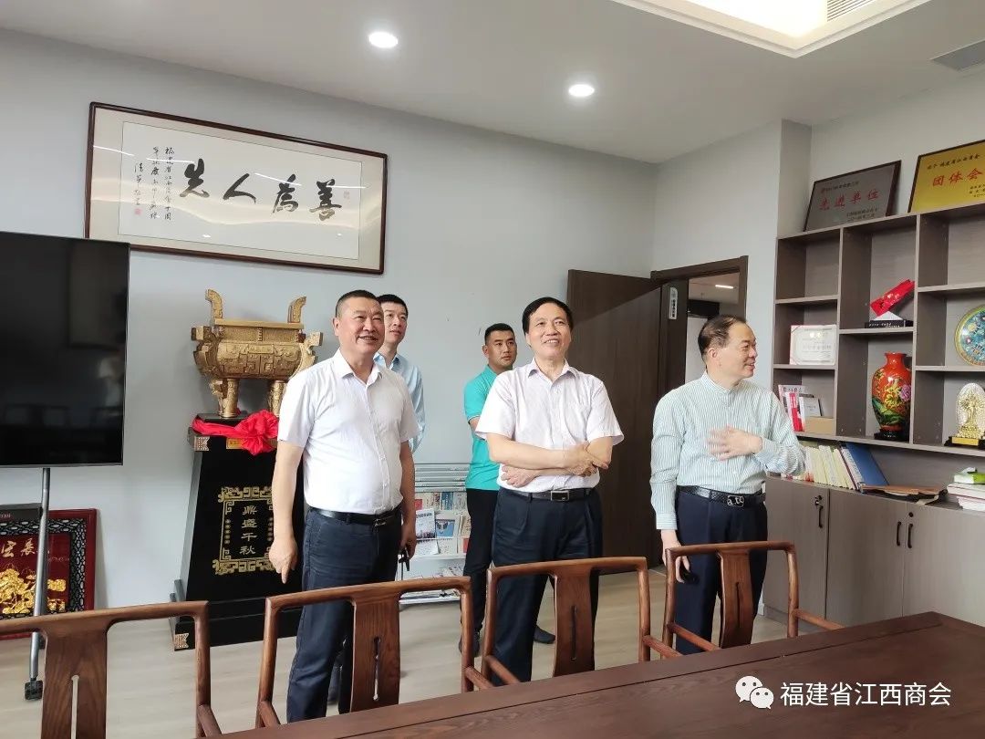 5月6日上午,福建省民间组织发展促进会会长汪洁生、监事长吴正贵、秘书处负责人陈敏,福建省广东商会秘书长骆树忠、福建省吉林商会秘书长薄秋玉一行,莅临我会参观考察。会长张学霖热情接待了汪会长一行,党支部书记兼秘书长周高福,轮值会长康珉、张文敏,副秘书长曹卫华参加接待。 张会长首先对汪会长一行莅临我会参观考察、指导工作表示热烈的欢迎,由衷的感谢各位领导和同仁对商会的关心。向大家介绍了商会发展历程及近期工作开展情况。福建省江西商会成立于2006年,是福建省成立的第一家省级异地商会。2013年、2021年连续两届被福建省民政厅评为“5A级商会”。先后多次获评“先进党支部”“四好商会”“先进社会组织”“先进基层党组织”等荣誉称号。本届开展的轮值会长制度,经过几个月的实践,成效显著。在轮值过程中,会长们从幕后走向台前,积极组织开展工作,不仅能为商会发展建设出谋划策,还能带动商会活动的开展,助力商会发展的越来越好,得到了广大会员的高度赞同和认可。 汪会长指出,本次来商会的主要目的是参观、调研,商会搬迁新址,带大家过来认个门、走动一下。听完张会长的介绍,加上平时听到、看到、感悟到的,他认为福建省江西商会近几年发展的越来越好了。他表示,福建省江西商会发展得好,离不开以下几个因素:一是讲政治,商会党建工作做得好,走在了福建省省级异地商会的前头;二是讲团结,商会企业家很多,但是相互之间非常团结、互帮互助、共同进步;三是抓服务,商会在服务企业、服务会员方面尽心尽力,为会员提供优质精准的服务;四是求效果,经过全体会员的不懈努力,连续两次获评为“5A级商会”,是非常值得骄傲的。最后,他希望福建省江西商会越办越好、越办越大,成绩更上一层楼。 座谈交流前,党支部书记兼秘书长周高福带领客人参观了商会会馆。