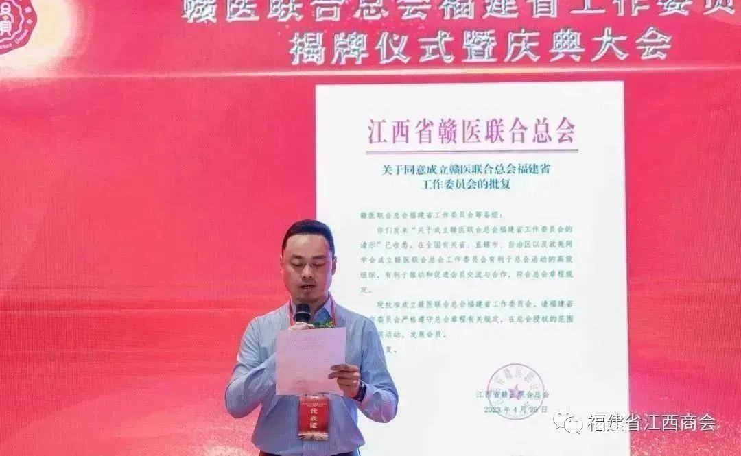 江西省赣医联合总会办公室主任李瞳宣布《关于同意成立赣医联合总会福建省工作委员会的批复》。