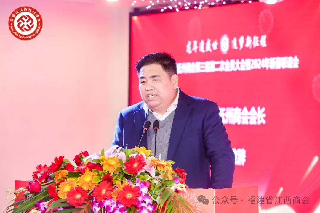 3月2日,“龙年逢盛世 追梦新征程”福建省江西抚州商会第三届第二次会员大会暨2024年新春联谊会在梅峰荣誉大酒楼隆重举行。商会班子主要成员:会长张学霖,党支部书记兼秘书长周高福,常务副会长王涌、周光明;轮值会长陆瑛娜,副秘书长曹卫华代表省商会参加活动。 大会由我会常务副会长、抚州商会执行会长邓荣平主持。 我会班子主要成员、福建省江西抚州商会会长王军球在致辞中,首先对长期以来关心支持福建省江西抚州商会发展的各级领导、社会各界朋友、全体会员致以衷心的感谢。他表示,2023年是商会第三届理事会换届后的起步之年,商会强化党建引领确保正确发展方向,通过服务赋能,引领会员企业抢抓机遇、真抓实干,在实现企业新发展的同时,不忘初心、回报社会。王会长表示,风华正茂扬斗志,不负韶华创辉煌。2024年,福建省江西抚州商会将迎来成立10周年,十载芳华正值大展宏图之际,商会将继续在抚州市委、市政府、市委统战部、市工商联及福建省民政厅的指导和管理下,以高质量发展为根本动力,在稳大局、开新局中,守正创新、开拓奋进,一定能在新征程上谱写发展新篇章,创造发展新辉煌。 会长张学霖在致辞中,首先对大会的召开表示了热烈的祝贺,向出席大会的各位领导、嘉宾及抚州商会企业家们致以亲切的问候和美好的祝福。张会长向大家介绍了省商会近年来取得的工作成果和获得的荣誉,并分享了在闽赣籍商会的发展情况,去年获得全国“四好”商会称号的在闽赣籍商会占全省“全国'四好'商会”的10%。他表示,在今后的工作中,福建省江西商会将进一步凝聚会员力量,互通有无,更好地发挥整体优势,帮助会员企业扩大影响,开拓市场,做大做强。近年来,民营企业的崛起,遇到了很大的压力,但是“百世岁月当代好,千古江山今朝新”,我们应该以一种砥砺前行的决心、信心,凭借我们不畏艰险的独特本性,为闽赣两省经济高质量发展贡献力量。