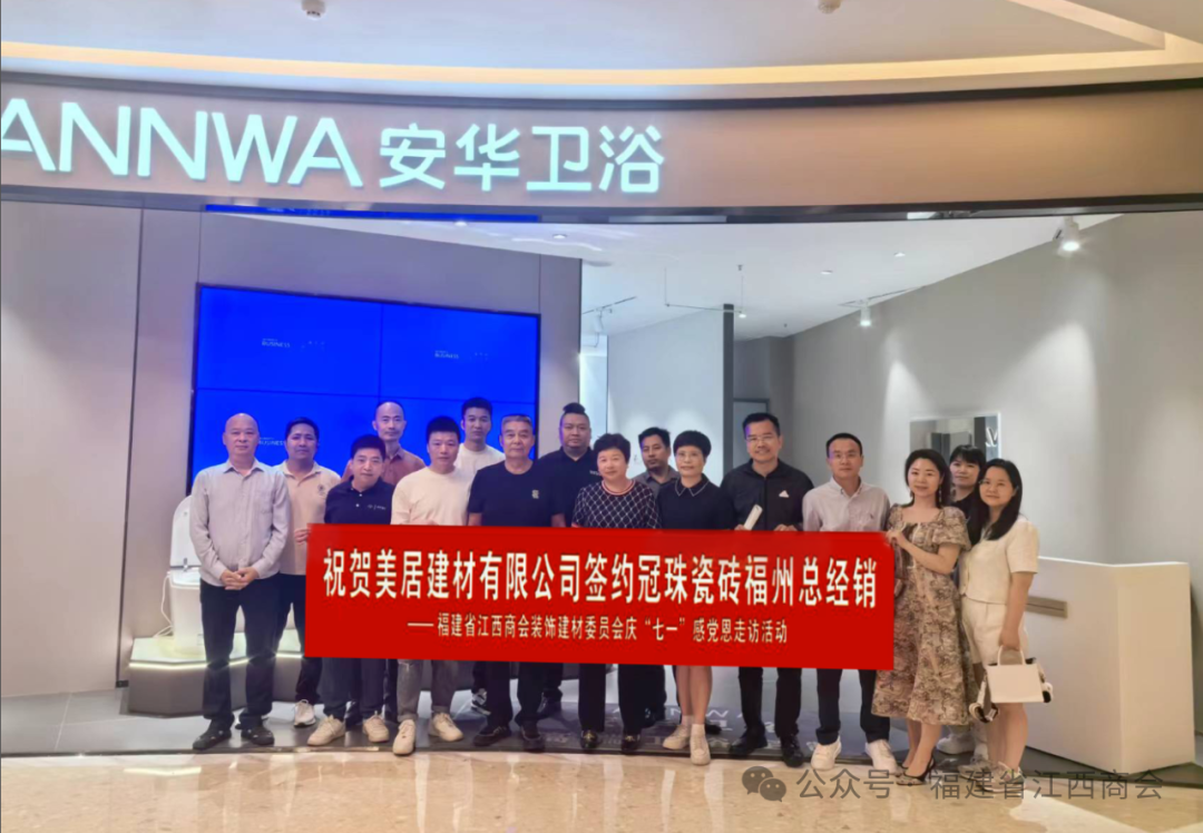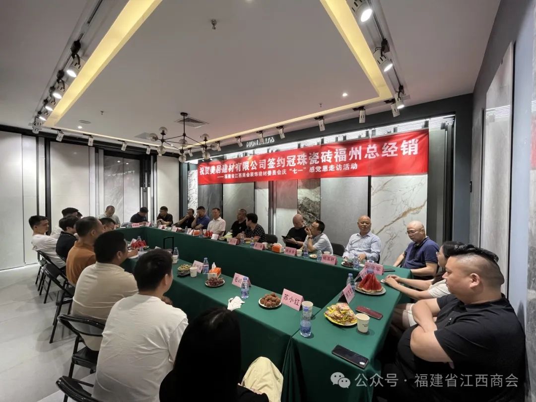 6月28日下午,福建省江西商会装饰建材委员会庆“七一”感党恩走访活动,在副会长蓝胜阳单位——美居建材有限公司冠珠瓷砖专卖店顺利举行。商会顾问朱建平;商会班子主要成员:执行会长王红,监事长应卫峰,常务副会长王涌、周光明;轮值会长张炳煌、黄丽珍;常务副会长吴永全、肖正钟、姚玉林、吕少华、蔡恒庆、刘学军;副会长陈良锋、童铁辉、蓝胜阳及理事、会员、秘书处人员等20余人参加活动。 活动由福建省江西商会常务副会长、装饰建材委员会秘书长黄丽珍主持。 福建省江西商会副会长蓝胜阳首先对各位领导、嘉宾的到来表示热烈的欢迎和衷心的感谢。他表示此次与冠珠瓷砖达成合作,深感荣幸与责任重大。他将秉持诚信经营的理念,以优质的服务和卓越的品质,为福州的消费者带来全新的体验。蓝会长表示,虽然一年会比一年更艰难,但相信只要坚持做一件事情,头脑清晰、脚踏实地向前走,一定能够熬到春暖花开之时。 福建省江西商会常务副会长、装饰建材委员会主任蔡恒庆汇报《福建省江西商会装饰建材委员会2024上半年工作情况》,简要介绍了装饰建材委员会2024上半年取得的工作成绩、存在的问题以及下半年的工作规划。他表示,即将到来的7月1日,是我们伟大的中国共产党成立103周年纪念日。在这个特殊的日子里,福建省江西商会装饰建材委员会组织了这次走访活动,旨在感党恩、跟党走,进一步增强会员们的凝聚力和向心力。 座谈中,与会人员一一介绍了各自的企业的基本情况、特殊产品,分享了企业建设过程中总结的好经验、好做法,表达了今后将充分利用商会、专委会的优势,积极交流与合作,共享信息、资源互通的美好意愿,并对未来市场的发展进行深入的探讨,发表了自己的观点、看法。 监事长应卫峰在讲话中,肯定了装饰建材委员会上半年的工作成绩,希望装饰建材委员会坚持在商会的领导下,突出它的特色,活动越办越好。同时也对装饰建材委员会运行提出了一些建议,各项活动事宜必须要依法依规,确保安全,让活动开展的更加有意义、有价值。 执行会长王红在座谈中谈到,自媒体和抖音等新兴平台为企业宣传和品牌推广提供了巨大机遇。企业应充分利用自媒体和抖音的优势,创新营销模式,拓展客户群体,提升品牌知名度和影响力。她还鼓励企业按照市场规则,不断优化管理流程,以提高市场竞争力。 装饰建材委员会顾问、福建省军区原后勤部部长朱建平作总结发言,他首先对美居建材有限公司成功签约冠珠瓷砖福州总经销商表达了最诚挚、最热烈的祝贺。值此“七一”之际,朱部长带领大家深情回顾了党的光辉历程,指出党的领导是国家繁荣、行业发展的根本保障。正因在党的指引下,我们才有了如今良好的发展环境。最后,面对当前形势,他对装饰建材委员会提出了几个建议:第一,深入学习,了解形势,以逸待劳;第二,看准目标方向,思考企业转型;第三,团结一致,避免内部消耗;第四,坚定信心,做好应对准备。委员会内部应团结起来,共同应对困难,相信未来会更美好。 会后,福建省江西商会装饰建材委员会和六月份轮值会长,带领大家继续走访企业。通过与企业负责人的交流,了解企业的发展现状和面临的困难,并积极出谋划策,提供帮助和支持。 此次活动的成功举办,不仅标志着美居建材有限公司在业务发展上取得了新的突破,也展示了福建省江西商会装饰建材委员会积极向上的精神风貌和社会责任感。在未来的发展道路上,我们相信美居建材有限公司将与冠珠瓷砖携手共进,创造更加辉煌的业绩。同时,福建省江西商会装饰建材委员会也将继续发挥其桥梁和纽带作用,为会员企业提供更多的服务和支持,共同推动装饰建材行业的繁荣发展。