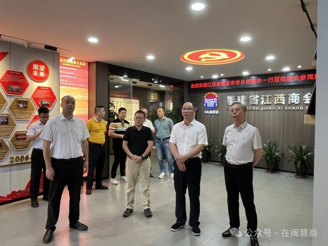 6月26日上午,瑞金市委副书记、市政府市长、瑞金经开区管委会主任刘春林莅临商会参观考察。瑞金市委常委、市政府副市长黄发亮,瑞金经开区招商与企业服务局刘俊良,瑞金市政府办公室蓝志华,福建合申新材料有限公司董事长林生等一同考察。会长张学霖在商会会馆热情接待了刘春林市长一行,轮值会长张炳煌,福州市江西瑞金商会执行会长吴荣泉,理事廖洪文,副秘书长曹卫华等参加接待。 张学霖会长首先对刘市长一行莅临商会考察交流表示热烈的欢迎,并向各位领导介绍了商会办会宗旨、建会历程、商会获得荣誉等方面的基本情况。张会长表示,目前商会主要围绕着会长轮值、专委会活动开展日常工作,每月轮值会长们和各专委会主任都从幕后走向台前,积极组织活动开展,各种活动此起彼伏,真正意义上做到了“周周有活动,天天有互动”,加强了商会会员之间的联系、交流、互动,增强了商会的团结力、凝聚力、向心力。 刘春林市长对张会长的热情接待表示诚挚的感谢,对商会在建设与发展方面所做的努力和取得的成就表示祝贺。他在交流中介绍了瑞金市的基本情况,瑞金市红色文化底蕴十分深厚,是红色故都、共和国摇篮、红军长征的出发点,也是人民代表大会制度的初始发祥地、党和国家初心使命的重要起源地。同时,刘市长还介绍了瑞金在招商引资方面的各种优势,重点发展精工智造、纺织服装、绿色食品与生物医药、红色文创制造等首位产业,有着巨大的发展潜力,是企业投资兴业的热土。最后,他邀请张会长在合适的时间,带领商会精英到瑞金投资考察,积极参与家乡招商引资工作。 座谈会交流前,张会长带领客人参观了商会会馆。