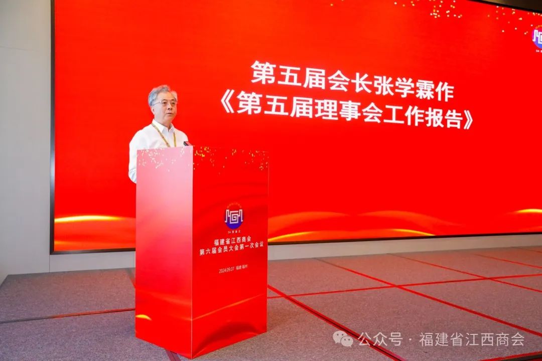 9月7日,福建省江西商会第六届会员大会第一次会议暨第六届理(监)事会第一次会议在福州顺利召开。商会顾问代表王爱平、方益全、罗春华、温佳禄、朱建平等领导到会指导。 会议由第六届理事会会长候选人张学霖主持。 会上,以举手表决形式审议表决了《福建省江西商会选举办法》《第五届理事会工作报告》《第五届理事会财务工作报告和监事会工作报告》《福建省江西商会章程(草案)》《第六届理(监)事会人员名单》等内容。 ▲第五届会长张学霖作《第五届理事会工作报告》 ▲第五届监事长应卫峰作《第五届理事会财务工作报告和监事会工作报告》 会议以无记名投票形式审议表决了《福建省江西商会第六届会费标准和使用管理办法》,选举产生了第六届理事会会长、副会长、常务理事等人员名单。 会议审议通过了秘书长聘任人选和名(荣)誉会长人选。 通过会员大会和理(监)事会既定程序,分别选出了商会新一届领导班子,张学霖当选为第六届理事会会长,邓荣平等16人当选为副会长,王军球等35人当选为常务理事,王涌当选为监事长,曹卫华当选为秘书长。 新任会长张学霖讲话中,首先对一直以来关心和支持商会发展的各级领导、各界朋友表示衷心的感谢。分别从加强自身建设,提升商会凝聚力;发挥桥梁作用,促进闽赣经济合作;强化服务意识,为会员企业排忧解难;履行社会责任,树立商会良好形象等四个层面,展望了第六届理事会工作规划,努力开创商会工作的新局面。 晚上,举行了福建省江西商会第六届理事会会员大会第一次会议晚宴。 张学霖会长在致辞中表示,感谢大家的信任与支持,在新的任期里,深感责任重大,使命光荣。新一届领导班子一定会以更加饱满的热情和更高的责任感,打造一个更加团结、更具活力、更有影响力的商会。第六届理事会,将不断创新服务模式,为会员企业提供更精准、更高效、更贴心的服务,帮助会员企业做大做强。商会不仅是增进友谊、加强交流的乡情纽带,更是资源互通、共商发展的信息平台,希望每位商会会员都能够在商会找到自己的价值,一起为商会的发展壮大贡献力量。 商会顾问代表王爱平讲话,对新当选的第六届理事会领导班子和对商会取得的工作成绩与荣誉表示热烈的祝贺,并对商会未来工作提出了几点建议。希望第六届理事会在传承商会优良传统的同时,不断开拓创新。在复杂多变的经济形势下,积极为会员企业搭建更广阔的平台,加强信息共享,促进资源整合,助力企业把握机遇、应对挑战。同时,希望商会的每一位成员都能积极参与商会的各项活动,珍惜商会这个大家庭,互帮互助,携手共进,共创美好未来。 晚宴期间,商会为九月份生日的会员举办了“生日会”。