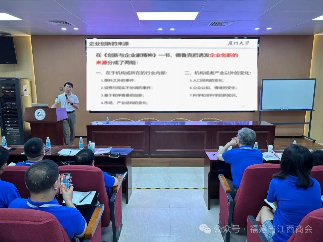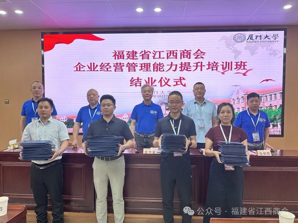 10月18日—20日,由福建省江西商会主办,十月份轮值会长承办的福建省江西商会企业经营管理能力提升培训班,在厦门大学顺利举办。会长张学霖,执行会长王军球、周光明、肖正钟,党支部书记周高福,监事长王涌,秘书长曹卫华以及常务副会长、副会长、理事、会员、秘书处人员120人参加本次培训。 破冰热身与团队建设活动 18日下午,福建省江西商会企业经营管理能力提升培训班全体学员,在美丽的厦门环岛路音乐广场,开展破冰热身与团队建设拓展活动。 通过分组互动,开启创意无限的团队组建之旅,强化沟通协调之能力;通过分组比拼,迅速提升团队集体荣誉感和协作精神。活动的开展,增强了大家的了解,拉近了彼此的距离,帮助大家迅速转变角色,从会员变成学员,融入团队,建立良好的合作关系,为后续的培训学习打下坚实的基础。 开班仪式 19日上午,福建省江西商会企业经营管理能力提升培训班开班仪式在厦门大学外文学院德贞楼顺利举行。 厦门大学外文学院党委书记徐琪致欢迎词,首先欢迎大家走进厦大这所“百年老店”,体验百年厦大人文情怀,感受名师名家精彩讲座。她说,福建省江西商会的各位企业家们以敏锐的市场洞察力、卓越的创新精神和强烈的社会责任感,在各自的领域中取得了令人瞩目的成就,为福建和江西两地的经济发展做出了重要贡献。学院高度重视本次培训班的课程设计,严格按照培训有关要求,整合厦门大学众多专家教授、相关领域顶尖学者,精心安排了系统的优质课程,希望能让各位学员学有所获、满意而归,在愉快的学习交流中增进友谊,增长才干。 张学霖会长作开班动员讲话,首先对徐书记以及厦大对本次培训班的支持表示诚挚的感谢。厦门大学是爱国实业家陈嘉庚先生一手创办的,目前拥有35位院士,为国家输送了一批又一批优秀人才,是所有福建人的骄傲。今天福建省江西商会120名优秀企业家相聚于此,有了一个新的身份——同学,我们在厦大同呼吸,共进步,希望在三天的学习中,能够实现“蝶化”,从灵魂深处寻找一份安静,回顾、总结过去,思考、展望未来。第六届商会我们提出了“文化建会”这一重要理念,本次厦大培训班开了一个好头,我们一同翱翔在知识的海洋,接受文化的熏陶,寻找更好的自己。最后,张会长以“读书人必然神采飞扬,追光者终将光芒万丈”祝福参加本次培训班的同学们,学有所归,学有所成。 课程学习 赖永炫教授—企业创新和数字化转型 赖教授从什么是企业创新和如何进行数字化转型两个方面,通过剖析经典的企业创新案例,为大家带来了一节生动精彩的课程。对大部分企业来说,数字化转型早已不是选择题,而是一道刻不容缓、关乎生存和长远发展的必答题。本节课程,学员们深入了解企业创新和数字化转型的重要性和方法,为企业的发展提供新的思路和方向。 何福龙教授——企业战略管理与核心竞争力 何教授从战略管理、企业规模、创新机制、公司治理、经营机制、企业家精神、企业文化等七个方面,通过具体案例分析了成功企业如何打造和强化自己的核心竞争力,为学员们提供了宝贵的借鉴和启示。本节课程,学员们深入学习了企业战略管理的理念和方法和提升企业的核心竞争力的重要意义,为企业的持续发展注入强大动力。 庄国土教授——中国双循环背景下民营企业的机遇和挑战 庄教授以其卓越的学术见解和对经济形势的敏锐洞察力,结合当前经济形势,运用大量经济数据,使抽象的理论变得生动具体,为学员们全面解读了当前中国双循环新发展格局。他表示:民营经济是中国融入全球化以后高速崛起的主力军。当前中国面临前所未有的错综复杂的国内外环境,更需要民营经济的发展。民营经济需要的不是保护和扶持,而是公平透明的市场规则。 童教授凭借其丰富的教学经验和专业知识,深入剖析了高绩效团队的关键要素,为学员们带来了一场关于管理者高绩效团队创建的精彩课程。本节课程为管理者们提供了创建高绩效团队的实用方法和策略,让学员们对团队管理有了更深刻的认识。相信在教授的指导下,学员们将能够更好地带领团队,实现高绩效目标,为企业的发展贡献更大的力量。 结业仪式 结业仪式由党支部书记周高福主持。 第一小组副组长章玉玲、第二小组组员饶苏、第三小组组员吴靖波、第四小组组员黄宗群分别作为学员代表发言、分享学习心得。纷纷表示,通过此次培训,不仅学到了新的知识和技能,还拓宽了视野,增强了信心。他们结合自身在培训中的收获与感悟,生动地讲述了所学知识对个人和企业发展的启发。学员们的真诚分享,让在场的每一个人都感受到了学习的力量和成长的喜悦。 轮值会长代表张炳煌表示,在张会长“横向到边,纵向到底”的矩阵化管理模式下,有幸来到双一流大学开展为期三天的培训生活,厦大这座学术的殿堂,为我们打开了一扇又一扇通往新境界的大门。在这里,我们聆听了各位教授的精彩授课,他们用渊博的知识、丰富的经验和深刻的见解,为我们解读了企业管理的奥秘、行业发展的趋势以及创新变革的力量。结业并不意味着结束,而是一个新的开始,学习时间短暂,但友谊天长地久,我们将带着在这里学到的知识、技能和理念,回到各自的工作岗位上,继续为我们的事业而奋斗。 荣誉会长陈晓康表示,江右商帮已有八百年的历史,未