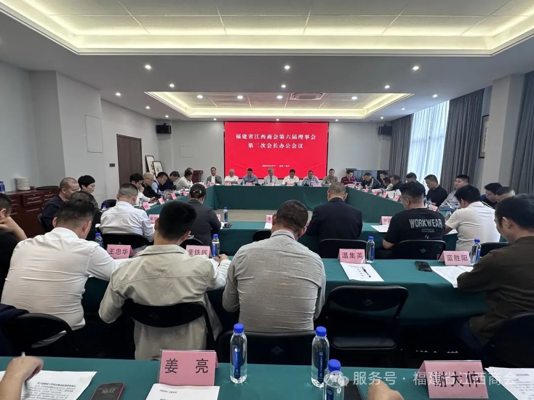 首先,四月份轮值会长代表、常务副会长许建纲作《四月份轮值情况》汇报,四月份商会主要工作如下: 本月,我会获评2024年度“先进江西商会”、秘书长获评“优秀商会工作者”荣誉称号。 商会组织了四场活动:15日,福建省海峡社会组织研究院牵头,十几家省级社会组织莅临我会参观交流,并召开“凝聚赣商力量 共拓闽赣机遇”经验分享会;24日,福建省江西商会党支部联合多家在榕市县赣籍商会党支部前往中信银行福州分行党建馆开展党建共建活动;25日,2025第二季度《赣医大讲堂》在商会会议室成功开讲;27日,召开福建省江西商会第六届理事会第二次会长办公会议暨四、五月份轮值会长交接仪式。 商会配合省工商联开展“知识产权与人工智能护航企业出海”活动,并积极协办全省首家“星点心愿”孤独症青年手作饺子茶咖空间开业活动。 轮值会长陪同商会领导接待了7批到访客人,走访了1家外埠商会——福建省吉林商会,安排了28人次参加兄弟商会及相关部门的活动。走访了10家会员单位,其中:执行会长单位1家,常务副会长单位1家,副会长单位1家,理事单位3家,会员单位4家。 许会长最后表示,最美人间四月天,在商会领导、各位会长和广大会员的关心支持下,以及秘书处的精心安排、协助下,轮值活动取得了圆满的成功。他相信,接下来的轮值会长一定会把轮值活动做得越来越好,办得越来越精彩。 五月份轮值会长代表、常务副会长张向阳表示,非常荣幸担任五月份轮值组长。四月份轮值会长的工作开展得十分充实,这对我们而言是极大的激励。会后,我们几位轮值会长将召开会议,共同讨论工作安排,并且会严格依照《轮值会长制度》来开展日常工作。同时,也希望各位会长能积极支持与参与,在工作中推陈出新、富有创意。 会长张学霖在总结讲话中表示,今天的会议非常成功,到会率高且议题丰富。轮值活动开展到现在,已经达到了某种高度,希望能够在未来的一段时间内,找寻到更多的新意。当前正是推进“江西大厦”建设的好时机,这座承载着在闽赣商多年期盼的标志性建筑,不仅是赣商实力的象征,更是凝聚乡情、促进抱团发展的重要载体。商会是一个锻炼能力、提升自我的平台,希望大家积极参与读书会,拓宽视野、启迪智慧。商会的发展离不开每一位成员的支持与付出,期待大家继续凝心聚力,以主人翁的姿态参与商会建设,共同书写福建省江西商会高质量发展的新篇章! 活动最后,4月份轮值会长与5月份轮值会长交接旗帜! 本次会议的顺利召开,既是对商会阶段性工作的全面复盘,更是对未来发展的战略擘画。今后,福建省江西商会将持续强化组织凝聚力、服务创新力和社会影响力,团结带领广大会员在闽赣经济建设中展现赣商担当,续写“厚德实干、义利天下”的新时代篇章。