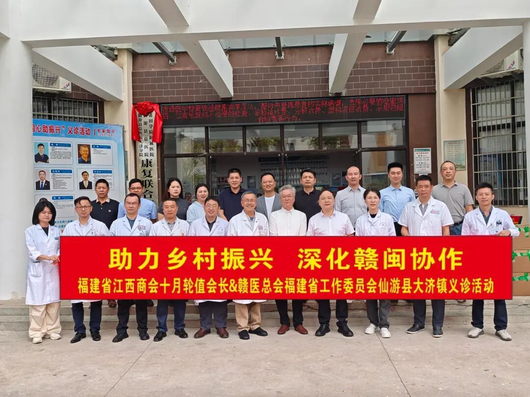10月25日—26日,福建省江西商会联合赣医联合总会福建省工作委员会组织医疗专家团队赴仙游县大济镇开展义诊,为当地群众送去优质医疗服务和医疗应急物资,以实际行动践行社会担当。赣医联合总会福建省工作委员会副主任周朝明,以及来自福建省儿童医院、省立医院、省二人民医院、省老年医院、福州经济技术开发区医院等省市医院的赣医专家组成员陈辉、付肖岩、肖章武、易汀宜、王欢、王晓虎、叶忠兴、肖强、张静;福建省江西商会会长张学霖,秘书长曹卫华,常务副会长、轮值会长黄宗群、邱秀兰,常务副会长张向阳、许建纲,副会长陈冬发,理事曾玉琪、李晓利等20余人参加本次义诊活动。