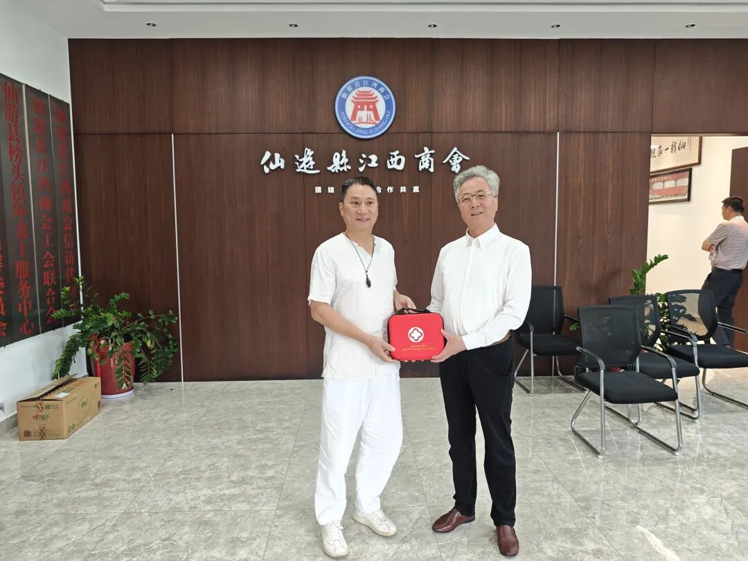 在这次义诊期间,会长张学霖带领商会成员与赣医专家团队还走访了莆田市江西商会。张学霖会长代表福建省江西商会和赣医委员会,分别向莆田市江西商会和仙游县江西商会捐赠家用急救包。这份捐赠既体现了福建省江西商会对兄弟商会的关怀与支持,也为仙游县江西商会和莆田市江西商会更好地服务赣籍乡贤、筑牢日常应急保障添砖加瓦。 此次仙游县大济镇义诊活动,是福建省江西商会、赣医联合总会福建省工作委员助力乡村振兴的具体行动,也是践行社会责任、服务人民群众的生动实践。未来,福建省江西商会与赣医联合总会福建省工作委员会将继续以民生需求为导向,深耕公益领域,让健康保障更贴近基层,让闽赣情谊在服务民生中持续升温,为促进闽赣两地交流合作,助力乡村振兴,守护人民健康贡献力量!