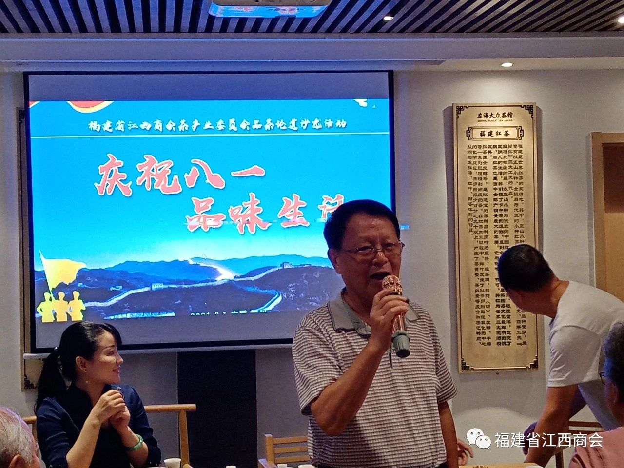 8月1日,恰逢中国人民解放军建军94周年,福建省江西商会茶产业委员会在福州左海大众茶馆举办“庆祝八一,品味生活”品茶论道沙龙活动。商会顾问王国贤、王爱平,商会会长张学霖、执行会长王红、常务副会长、副会长、秘书处成员,以及茶产业委员会成员等,共60多人参加了此次活动。茶产业委员会秘书长章玉玲主持活动。