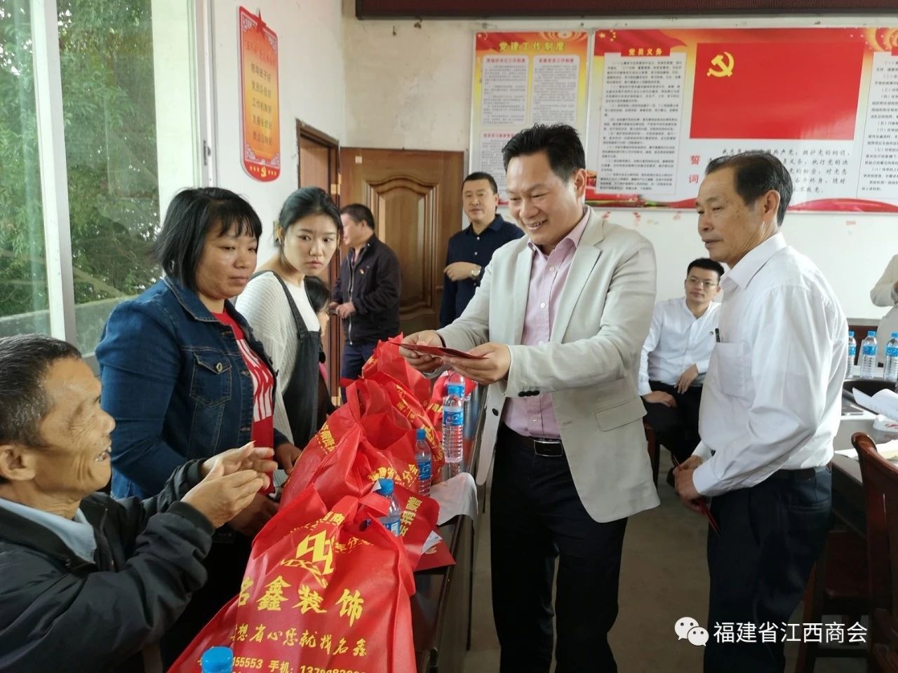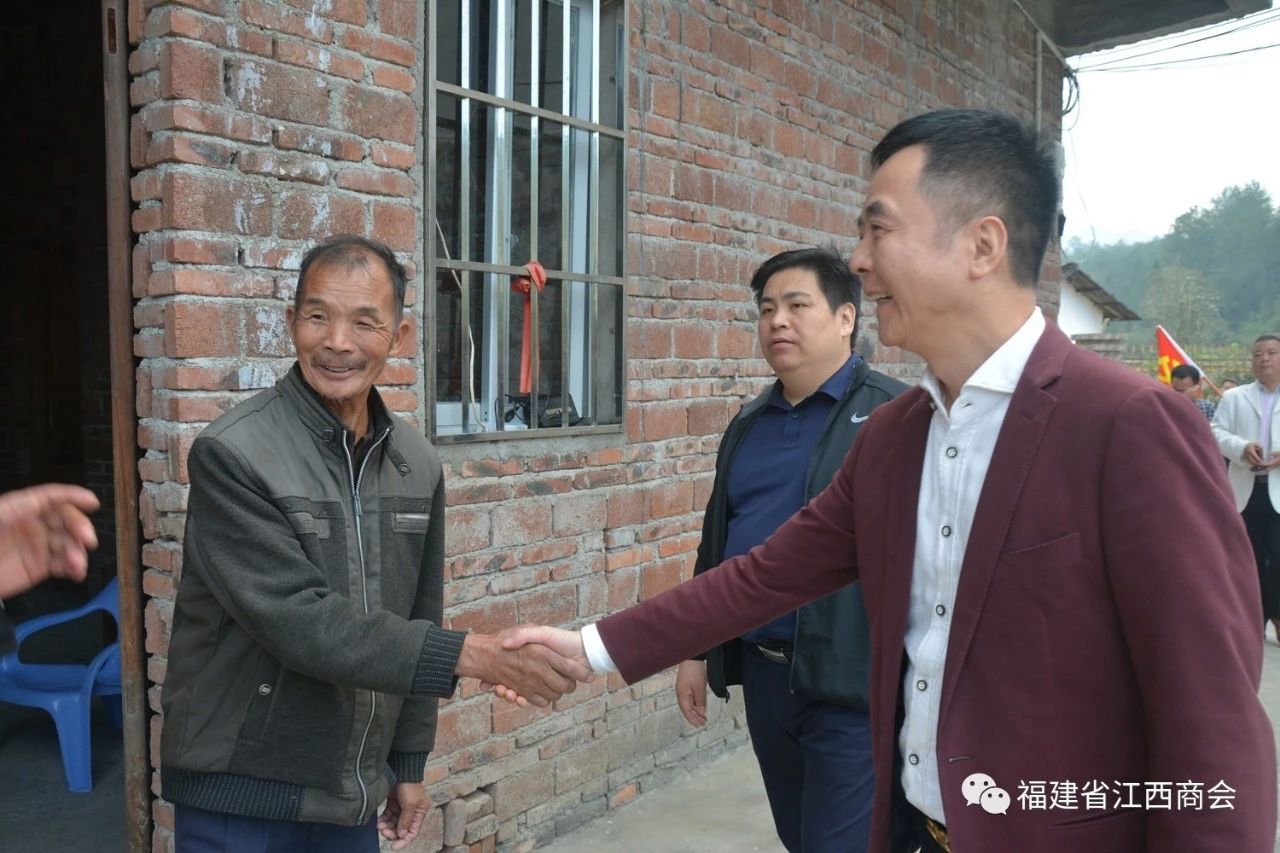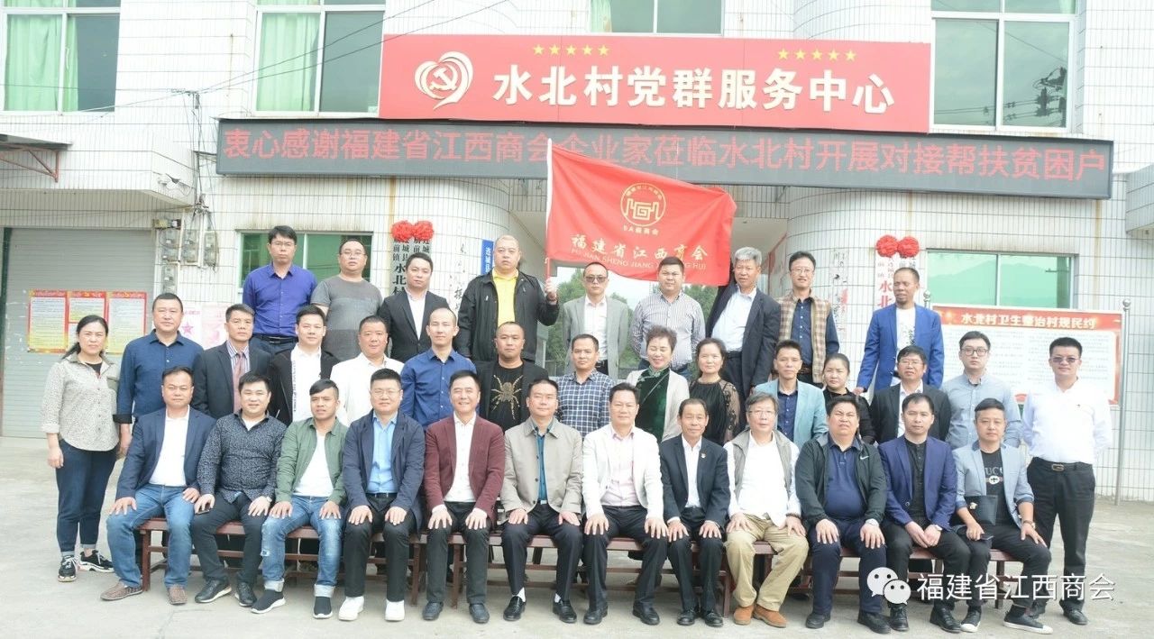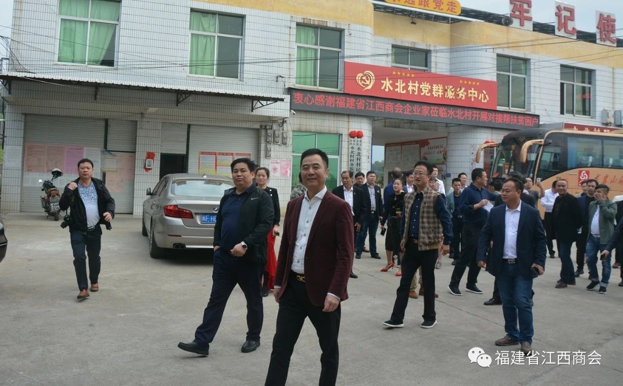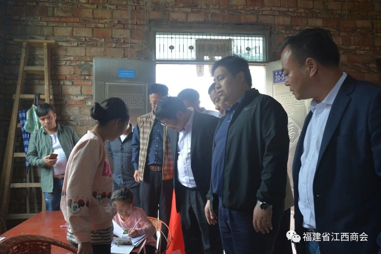 为了贯彻落实我省“千企帮千村”扶贫会议精神,11月11日,福建省江西商会会长胡连荣、执行会长张学霖、监事长应卫峰,常务副会长陈晓康、李之仁、郑俊锋、张诗生、王军球、周光明、李进兴 、付树锋、宋春雷 、胡总保、曾德强、洪福生,副会长吴永全、陈 光、肖正钟、陈新焱、李长辉、张治君、黄宗群、余细平 、李红光,秘书长,理事万晓红、陈水生、叶长生,监事张燕秋、钟家永,副秘书长李玉勇、刘文标、兰子龙、邓达龙、曾士发、邓国保、郭优春、陈尚军,秘书处周卫华、吴贵兰、张 辰、蒋苏国等商会成员到连城县庙前镇水北村开展“结对子”扶贫活动。福建江西商会30多位企业家分别从福州、泉州、南昌等地赶到水北村参加“结穷亲、献爱心”扶贫济困行动,筹集到57万元的扶贫专项资金用于该村扶贫,商会企业家与该村23户贫困户44名贫困村民开展“结对子”帮扶活动。