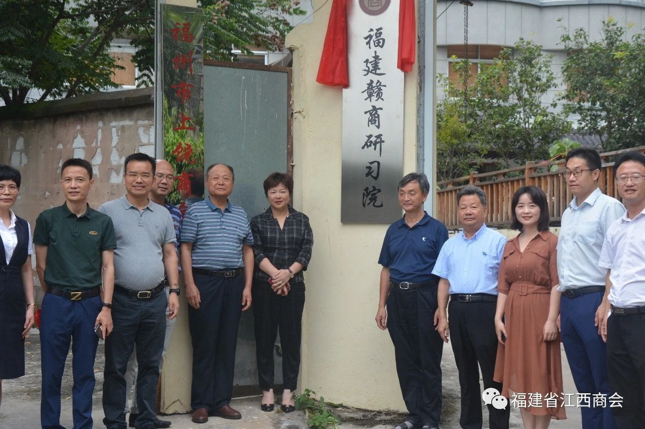 福建省江西商会新成立的赣商研习院经过多方选址,正式落地于福州市晋安区沁园支路金鸡山金桂大院。2021年6月23日下午,赣商研习院举行隆重揭幕仪式,王红院长与受邀前来参加活动的刘磁生、温佳禄、陈文汉、周小亮等顾问一起为牌匾揭开红幕,该院常务副院长刘学军、蔡恒庆、凌炎峰,副院长黄丽珍、杨周云、涂志辉、李玉勇等一起共同见证了庄严的揭幕时刻。