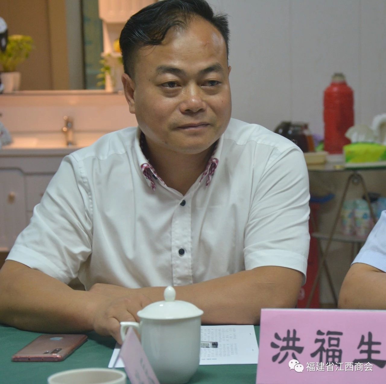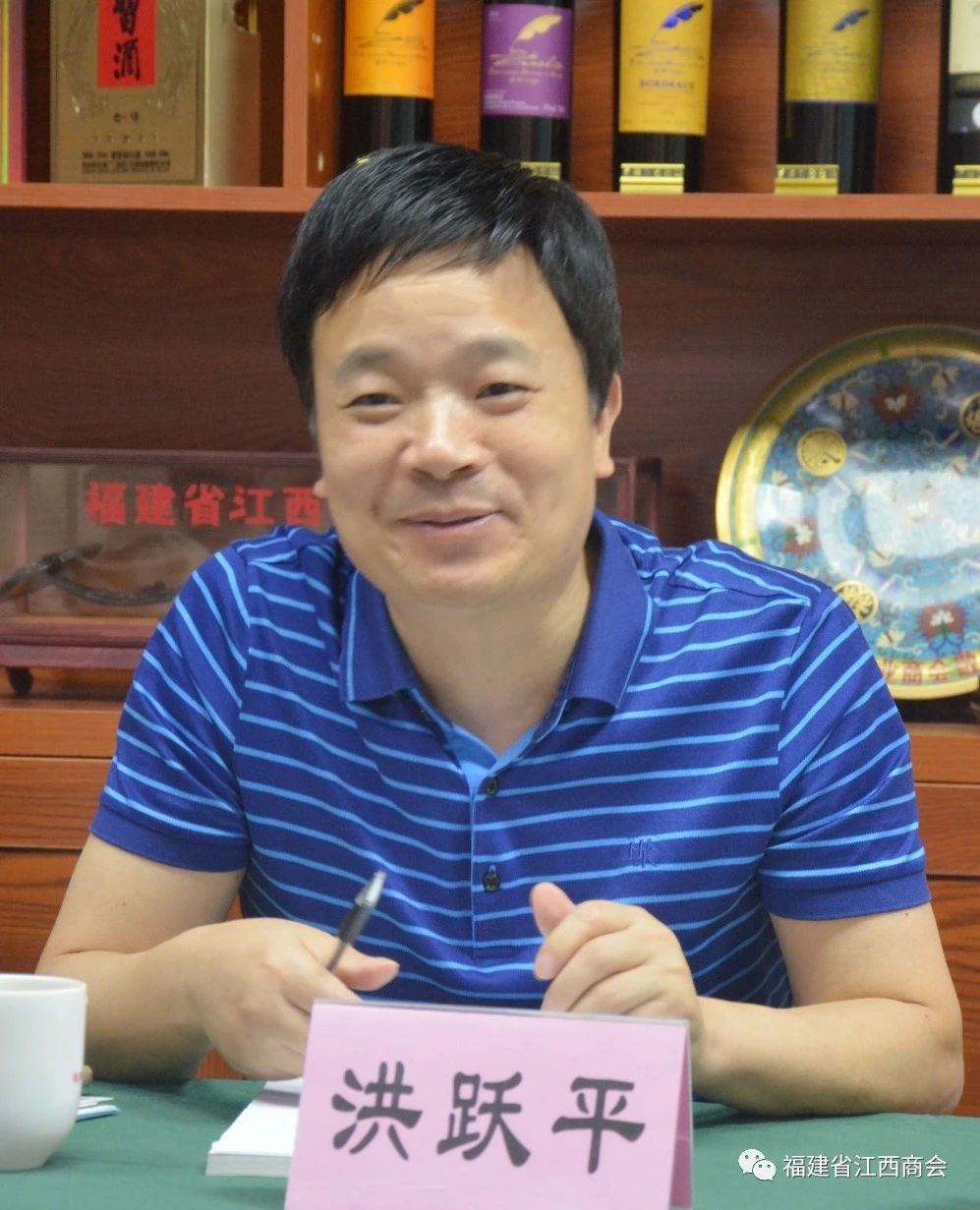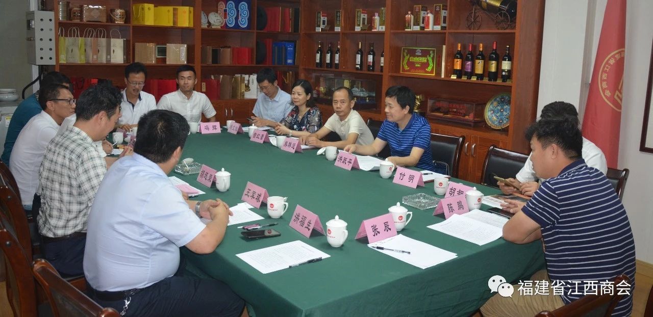 2019年8月8日,江西省工商联副主席洪跃平一行领导来到福建省江西商会考察指导工作,并与商会企业家亲切座谈。参加会议的有江西省工商联副主席洪跃平、经联处处长熊群运,江西省市场监管局正处级干部胡智政,江西省商务厅国内合作处调研员曾红蕾,江西省工商联办公室副主任付明、经联处副主任科员杨文俊,江西省工商联江西民营企业创新中心主任陈鹏,副主任冯辉,福建省江西商会会长胡连荣,执行会长张学霖,党支部书记、常务副会长王军球,轮值会长、常务副会长李进兴,轮值会长、常务副会长洪福生,秘书长周高福,副秘书长李玉勇,会议由执行会长张学霖主持。