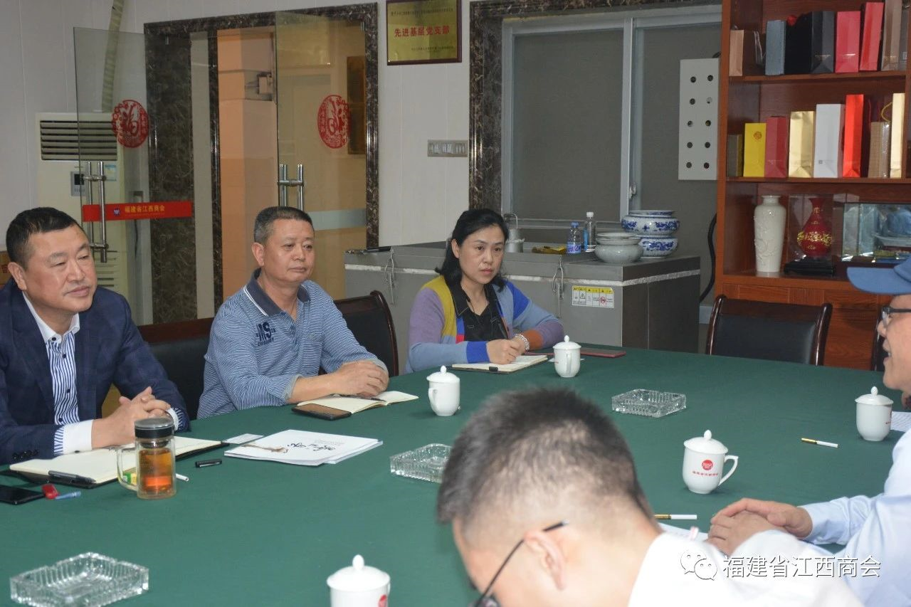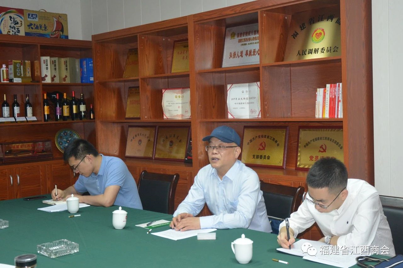 周高福秘书长对申建国主任一行莅临考察交流表示热烈欢迎和衷心感谢,并就商会的发展以及目前的会员企业概况进行介绍,周秘书长表示,福建省江西商会会员企业广泛分布于种养殖、酒店、鞋服贸易、餐饮、房地产、建材与装修、医药、机械制造等行业,在投资兴业方面,与甘肃省有较多区域资源互补性,福建省江西商会将与此次合作交流为契机,积极融合甘肃当地资源优势,在会员企业中开展经济合作宣传引导,希望在助力国家发展“一带一路”建设的同时,也能带动当地经济与人文生态环境的发展,为推动江西、甘肃两省经济合作发展作出贡献。