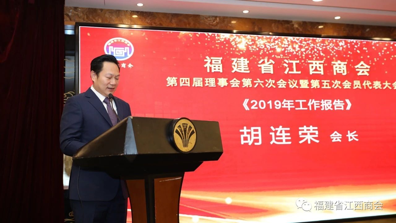 应卫峰监事长做《2019年财务报告》、胡连荣会长在会上做《2019年工作报告》。他指出:2019年是新中国70周年华诞,习近平总书记在今年的新年贺词中提到“2019年,有机遇也有挑战,大家还要一起拼搏、一起奋斗。”也指示“减税降费政策措施要落地生根,让企业轻装上阵。”增强了全体非公有制经济人士的信心,鼓舞了全国企业家的士气。以此为契机,福建省江西商会积极部署,真抓实干,在开展党建工作,营造商会学习氛围;承接职能转移,发挥商会桥梁作用;发展新生会员,夯实商会队伍建设;推行积分制度,激励商会会员士气;搭建多元平台,提升商会服务水平;参与社会公益,塑造商会品牌形象等六个方面做了一定工作。2019年商会在闽赣两省有关部门的指导下,在特邀嘉宾和各位乡贤的关心支持下,在全体会员的共同努力下,取得了阶段性的胜利。