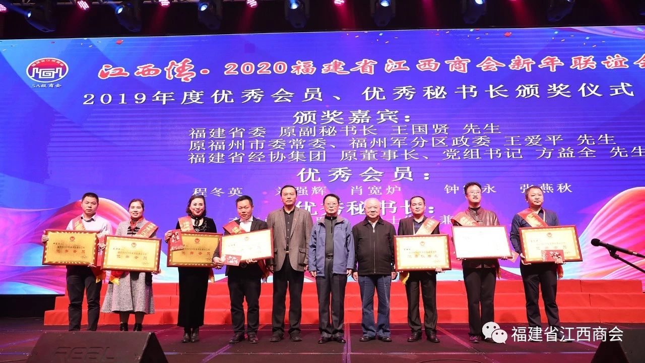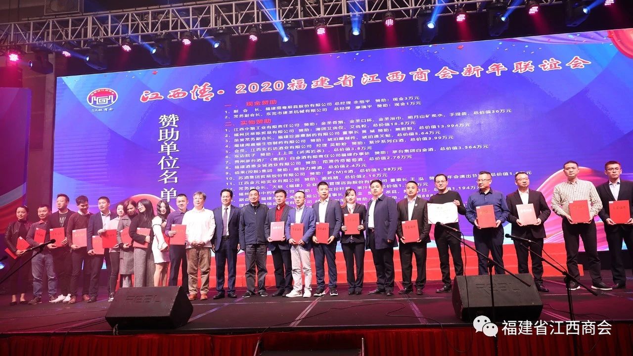 今年的新年联谊会邀请到了福建省工商联、民政策厅民间管理局、企联等有关部门领导,商会特邀嘉宾、嘉宾,福建省兄弟商会和在闽赣籍商会会长、秘书长,商会全体直属会员,健康、教育、财经委员会,合唱团成员和团体会员单位代表工作人员,赞助商等一千余人共同参加盛会。大会首先进行了颁牌仪式。特邀嘉宾以及商会领导上台为新增副会长、理事、会员代表,优秀会长、理事、会员、秘书长,以及2020新年联谊会赞助人员颁发匾牌以及证书。