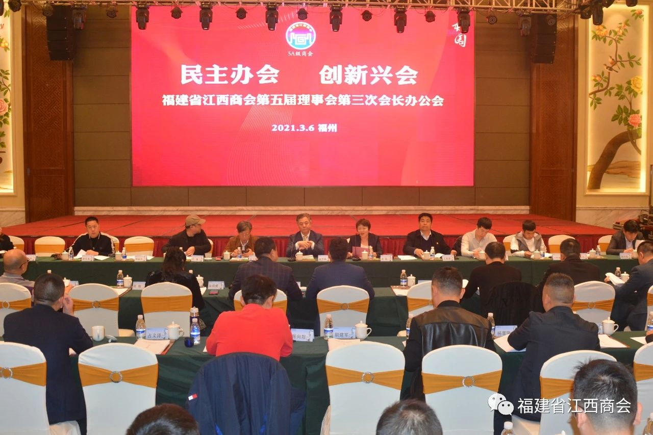 2021年3月6日下午,福建省江西商会第五届理事会第三次会长办公会在福州梅园国际大酒店召开。会议由执行会长王红主持。
