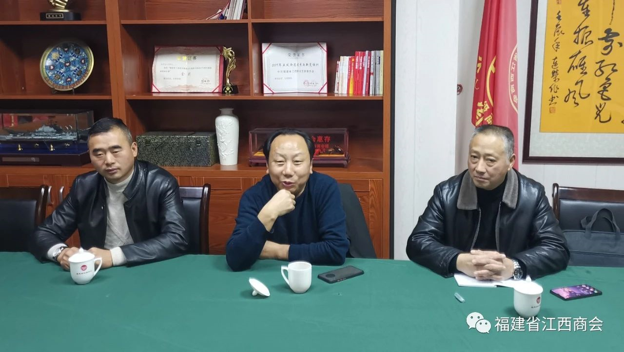 南平市江西商会筹备组组长金忠汇报了南平市江西商会筹备情况,通过几个月走访,征求意见,南平市江西商会筹备组目前已统计拟任会员人数100余人,其中理事以上30余人,现已向南平市工商联、民政局办理报备手续和成立申请报告,计划2021年元月前举行成立大会,庆典大会春节后举办。金组长说,成立南平市江西商会,按照南平市工商联要求,需要江西省赣商联合总会等有关部门批复证明,请省商会予以支持,帮助协调,同时,希望省商会给予指导,提出宝贵意见。